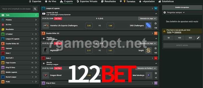 O 122bet oferece uma grande seleção de opções de apostas em e-sports com probabilidades competitivas